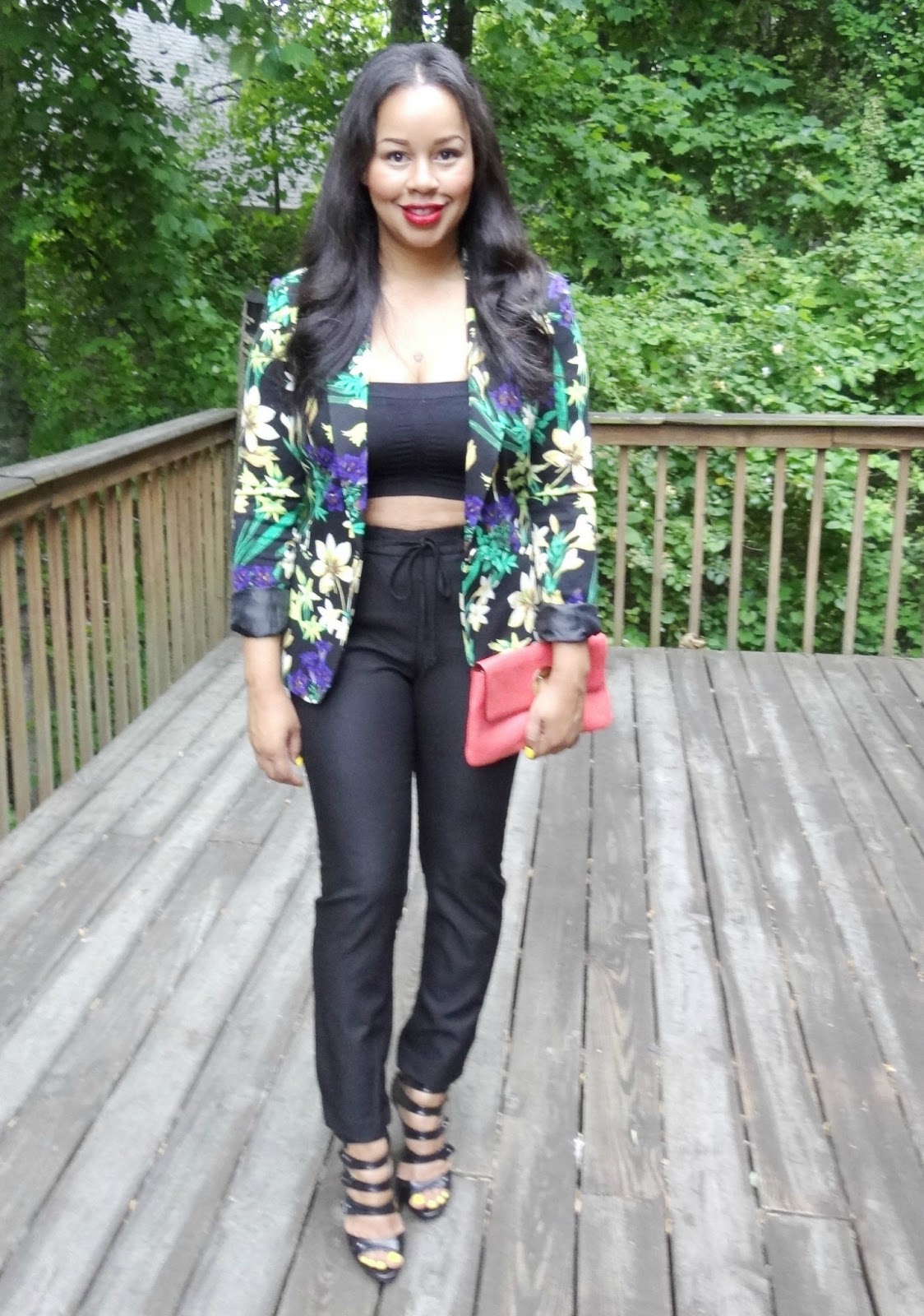 Blazer, F21 (similar)/ Track Pants, H+M (similar)/ Bandeau (old), Express/ Clutch, Kate Spade (similar)/ Shoes, JustFab